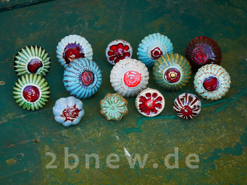 Diese E-Mail-Adresse ist vor Spambots geschützt! Zur Anzeige muss JavaScript eingeschaltet sein. oder telefonisch unter 0176 30488718. - Ich plane nächstes Jahr einen Möbelknopf-Komplett-Kurs bei der VHS Dudweiler mit 3 Freitag-Terminen: Töpfern, Glasieren und Fertigstellen. So sehen die aus: